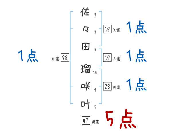 外運![]() | 佐々田瑠咲叶さんの外運は28画の1つ星!家庭環境に注意。スポーツで活躍できる能力があるかも。 生活面を象徴する運勢です。外部から受ける影響力を表し、結婚運、家庭運や職場、環境への順応性を表します。 |
