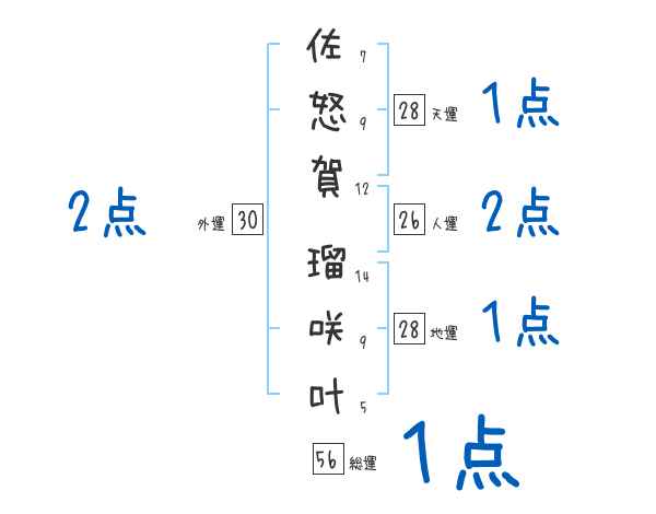 佐怒賀瑠咲叶さんの画数の鑑定結果