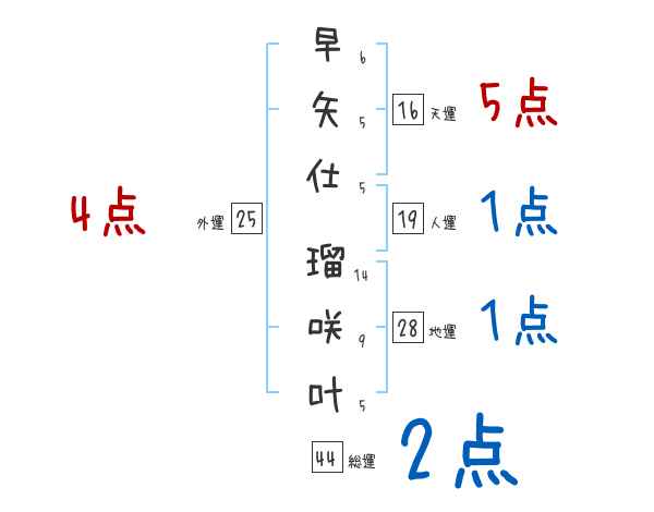 早矢仕瑠咲叶さんの画数の鑑定結果