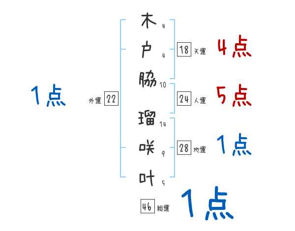 木戸脇瑠咲叶さんの画数の鑑定結果