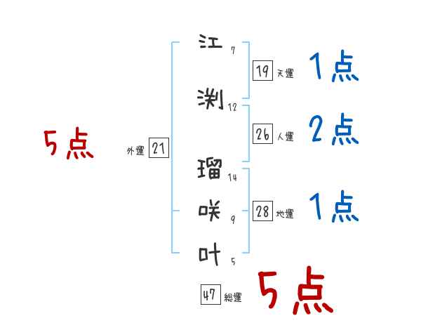 総運![]() | 江渕瑠咲叶さんの総運は47画の5つ星!実力が開花し発展する円満な人生。財に恵まれる。 あなたの人生を表す1番重要な運勢です。生涯を通じて影響する総合運となり、主に50歳以降の晩年期に影響を及ぼします。 |