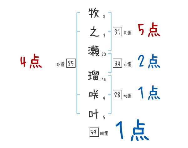 牧之瀬瑠咲叶さんの画数の鑑定結果