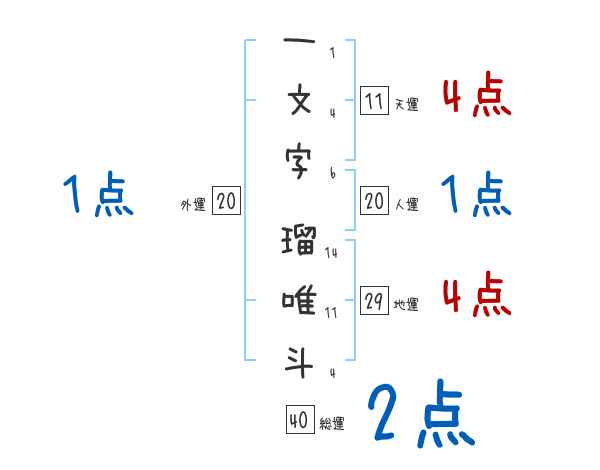 一文字瑠唯斗さんの画数の鑑定結果