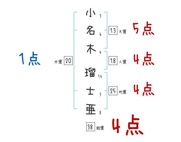 小名木瑠士亜さんの画数の鑑定結果
