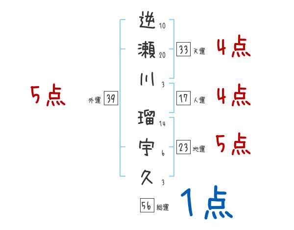 逆瀬川瑠宇久さんの画数の鑑定結果