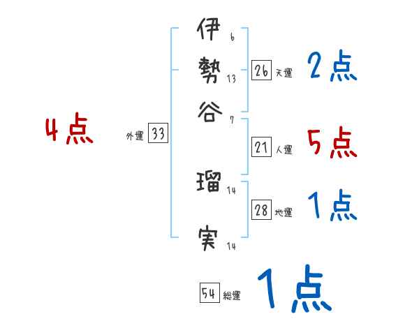 外運![]() | 伊勢谷瑠実さんの外運は33画の4つ星!権力志向でプライドが高い。勇気があり運を切り開き成功する。 生活面を象徴する運勢です。外部から受ける影響力を表し、結婚運、家庭運や職場、環境への順応性を表します。 |