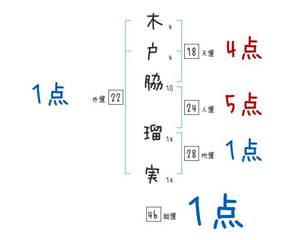天運![]() | 木戸脇瑠実さんの天運は18画の4つ星!情熱的で剛気。忍耐力があり信頼される。 家系が持つ宿命的な運勢を表します。祖先から受け継いだ苗字ですので自分の力が及びません。家柄を象徴します。 |