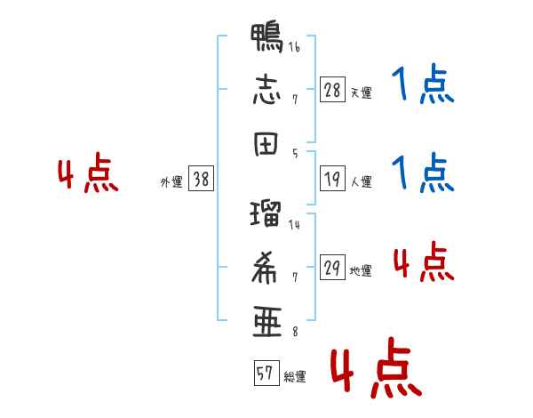 鴨志田瑠希亜さんの画数の鑑定結果