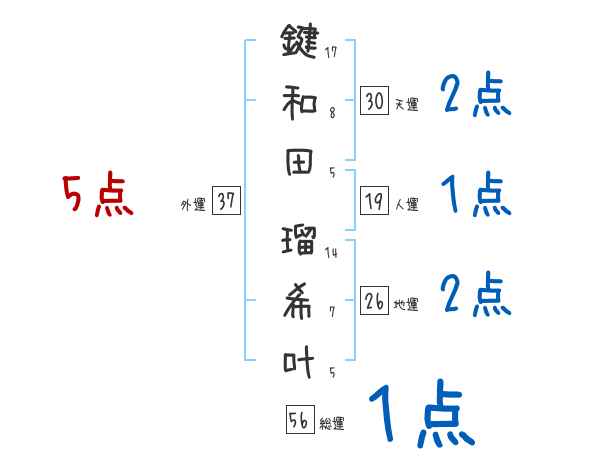 鍵和田瑠希叶さんの外運は37画の5つ星