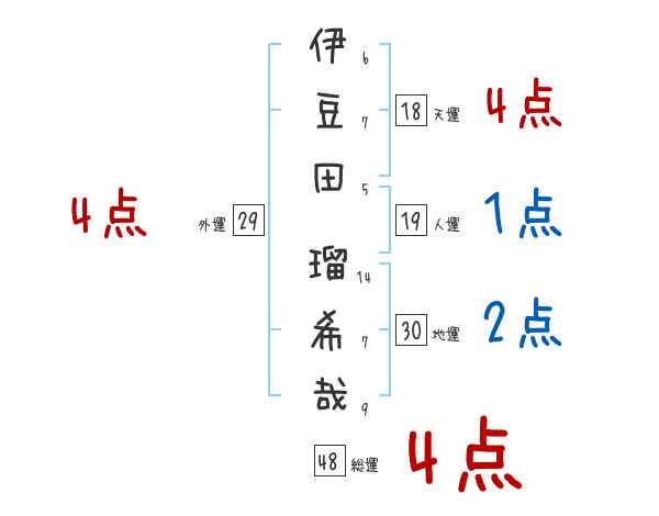 伊豆田瑠希哉さんの外運は29画の4つ星