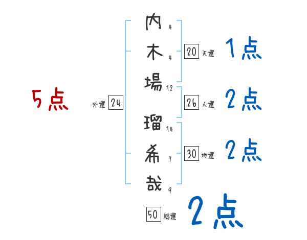 内木場瑠希哉さんの画数の鑑定結果