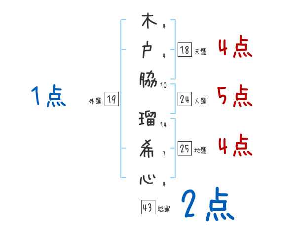 木戸脇瑠希心さんの画数の鑑定結果