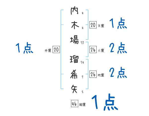 外運![]() | 内木場瑠希矢さんの外運は20画の1つ星!社交が苦手。人とは違った才能があり波乱万丈な人生かも。 生活面を象徴する運勢です。外部から受ける影響力を表し、結婚運、家庭運や職場、環境への順応性を表します。 |