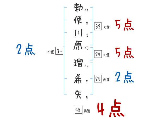 勅使川原瑠希矢さんの画数の鑑定結果