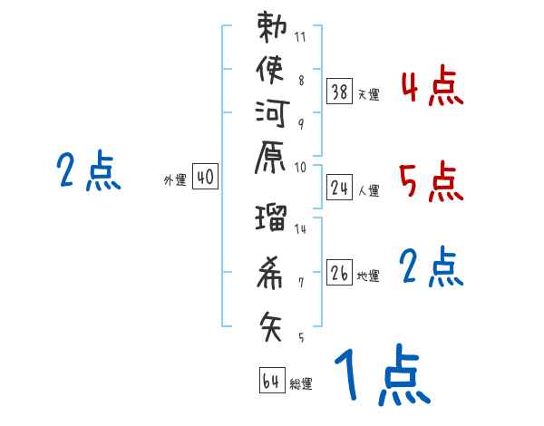 勅使河原瑠希矢さんの総運は64画の1つ星
