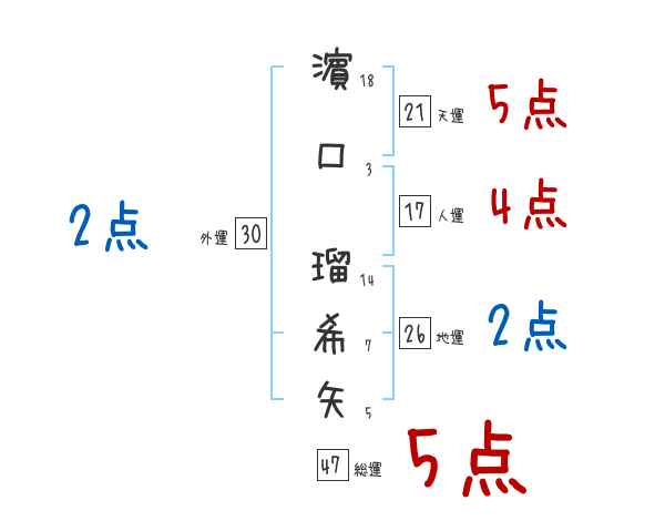 天運![]() | 濵口瑠希矢さんの天運は21画の5つ星!統率力がある。独立し成功する。名誉を手に入れる。 家系が持つ宿命的な運勢を表します。祖先から受け継いだ苗字ですので自分の力が及びません。家柄を象徴します。 |