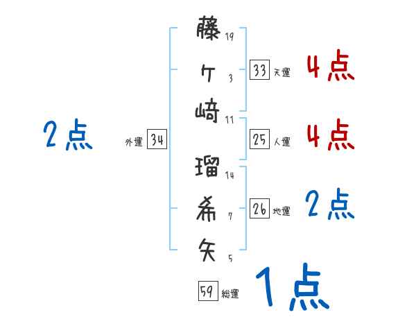 藤ヶ﨑瑠希矢さんの画数の鑑定結果