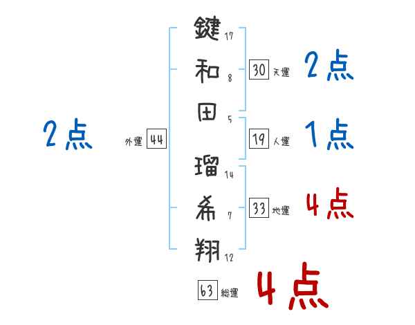 鍵和田瑠希翔さんの画数の鑑定結果