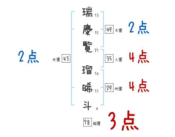 瑞慶覧瑠晞斗さんの総運は78画の3つ星