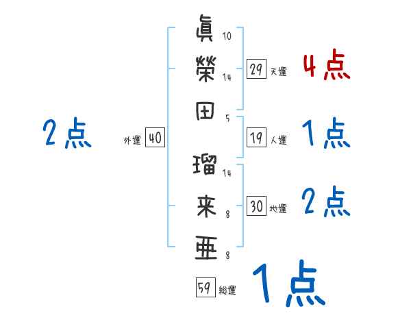 眞榮田瑠来亜さんの総運は59画の1つ星