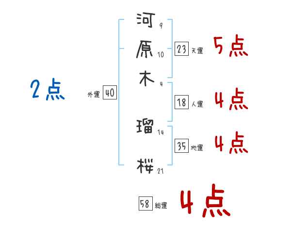 河原木瑠桜さんの画数の鑑定結果