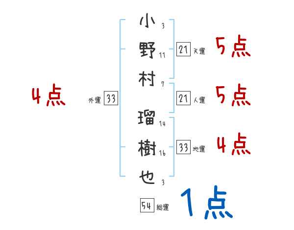 小野村瑠樹也さんの画数の鑑定結果