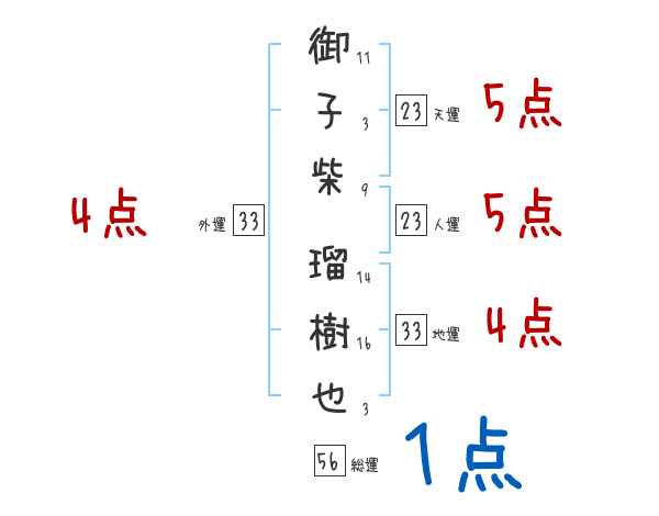 御子柴瑠樹也さんの画数の鑑定結果
