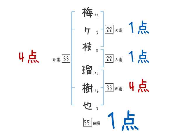 梅ヶ枝瑠樹也さんの画数の鑑定結果