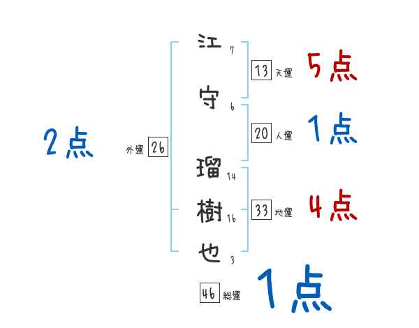 外運![]() | 江守瑠樹也さんの外運は26画の2つ星!波瀾万丈かも。信頼できる人を大事にしましょう。 生活面を象徴する運勢です。外部から受ける影響力を表し、結婚運、家庭運や職場、環境への順応性を表します。 |
