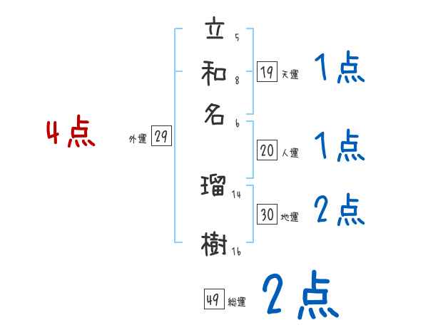 天運![]() | 立和名瑠樹さんの天運は19画の1つ星!優れた才能を持ちますが、協調性が足りないことも。周りの人と協力する事を意識しましょう。 家系が持つ宿命的な運勢を表します。祖先から受け継いだ苗字ですので自分の力が及びません。家柄を象徴します。 |