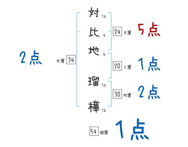 対比地瑠樺さんの画数の鑑定結果