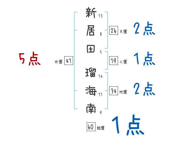 新居田瑠海南さんの画数の鑑定結果