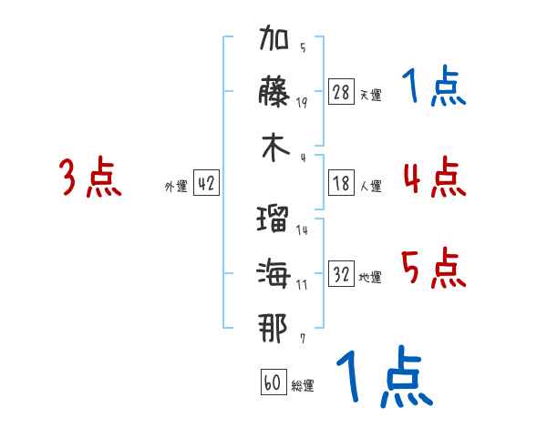 加藤木瑠海那さんの画数の鑑定結果