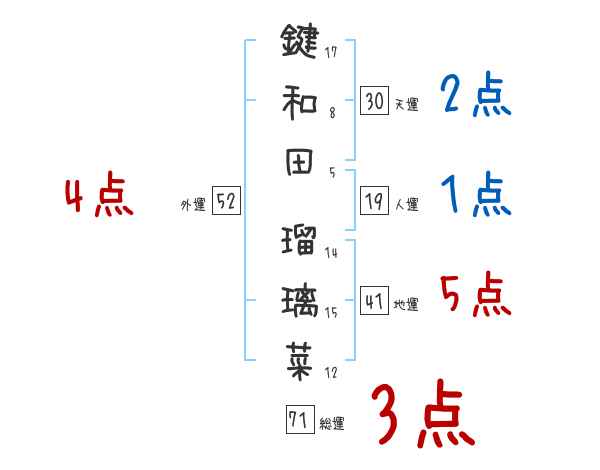 鍵和田瑠璃菜さんの画数の鑑定結果