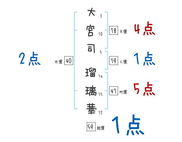 大宮司瑠璃華さんの画数の鑑定結果