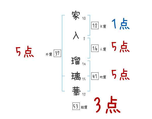 人運![]() | 家入瑠璃華さんの人運は16画の5つ星!人望が厚く大きく発展する。逆転成功が見える。 性格や才能などを表す2番目に重要な運勢です。人間関係や協調性、社会的な成功に影響します。主に20歳から50歳ぐらいまでの中年期の運勢を表します。 |