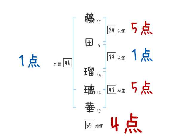 天運![]() | 藤田瑠璃華さんの天運は24画の5つ星!家庭運が良く順調な人生。金運にも恵まれる。 家系が持つ宿命的な運勢を表します。祖先から受け継いだ苗字ですので自分の力が及びません。家柄を象徴します。 |