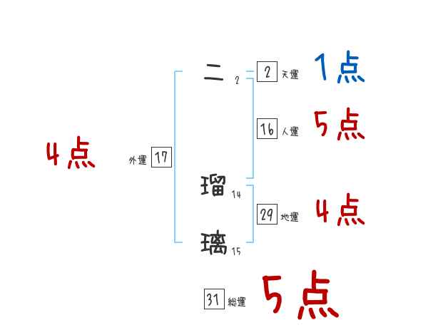 二瑠璃さんの画数の鑑定結果