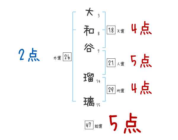 大和谷瑠璃さんの画数の鑑定結果