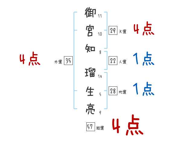 御宮知瑠生亮さんの画数の鑑定結果