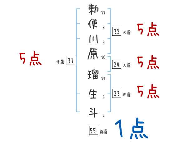勅使川原瑠生斗さんの画数の鑑定結果