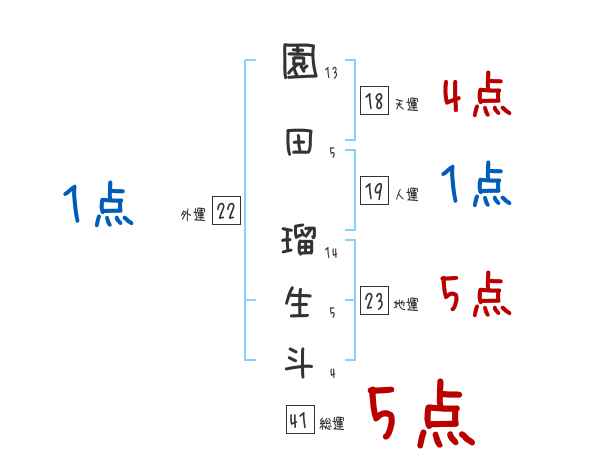 園田瑠生斗さんの画数の鑑定結果