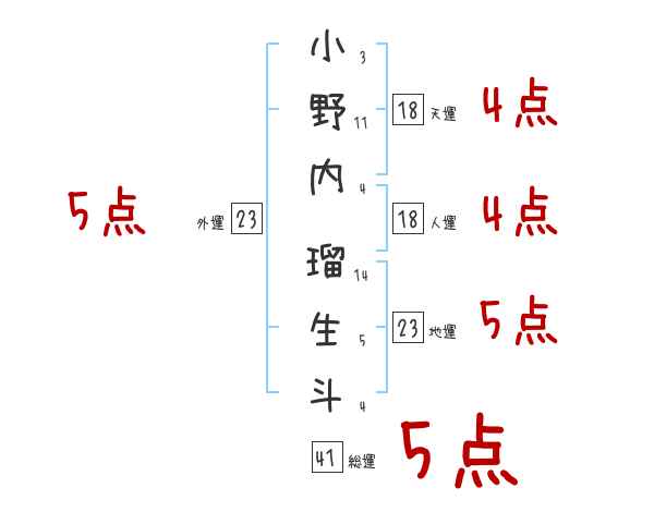 小野内瑠生斗さんの画数の鑑定結果