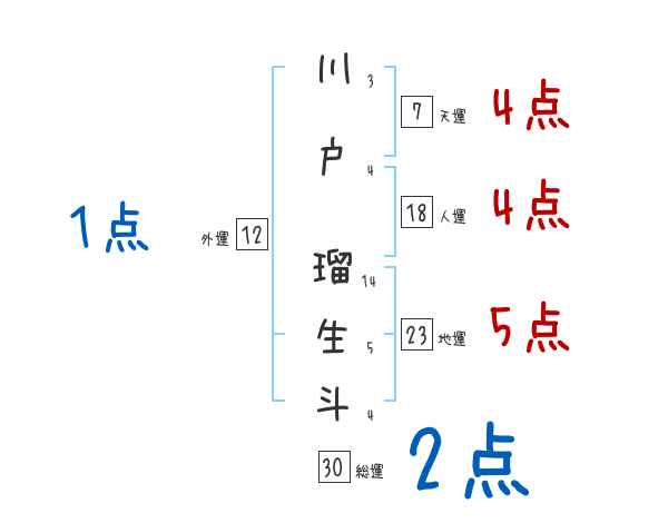 総運![]() | 川戸瑠生斗さんの総運は30画の2つ星!浮き沈みの激しさに注意しましょう。 あなたの人生を表す1番重要な運勢です。生涯を通じて影響する総合運となり、主に50歳以降の晩年期に影響を及ぼします。 |