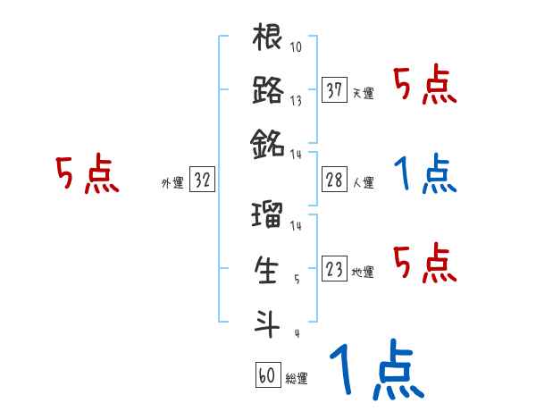 根路銘瑠生斗さんの画数の鑑定結果