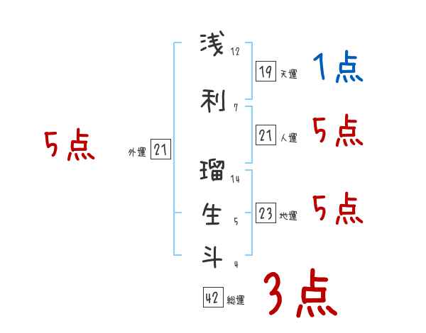 浅利瑠生斗さんの画数の鑑定結果