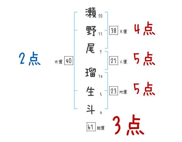 瀬野尾瑠生斗さんの画数の鑑定結果