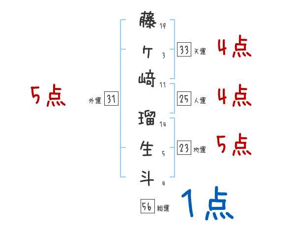 藤ヶ﨑瑠生斗さんの画数の鑑定結果