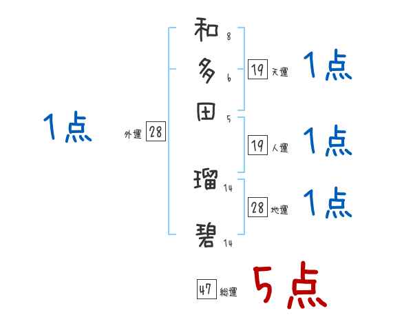外運![]() | 和多田瑠碧さんの外運は28画の1つ星!家庭環境に注意。スポーツで活躍できる能力があるかも。 生活面を象徴する運勢です。外部から受ける影響力を表し、結婚運、家庭運や職場、環境への順応性を表します。 |