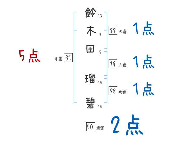 鈴木田瑠碧さんの画数の鑑定結果
